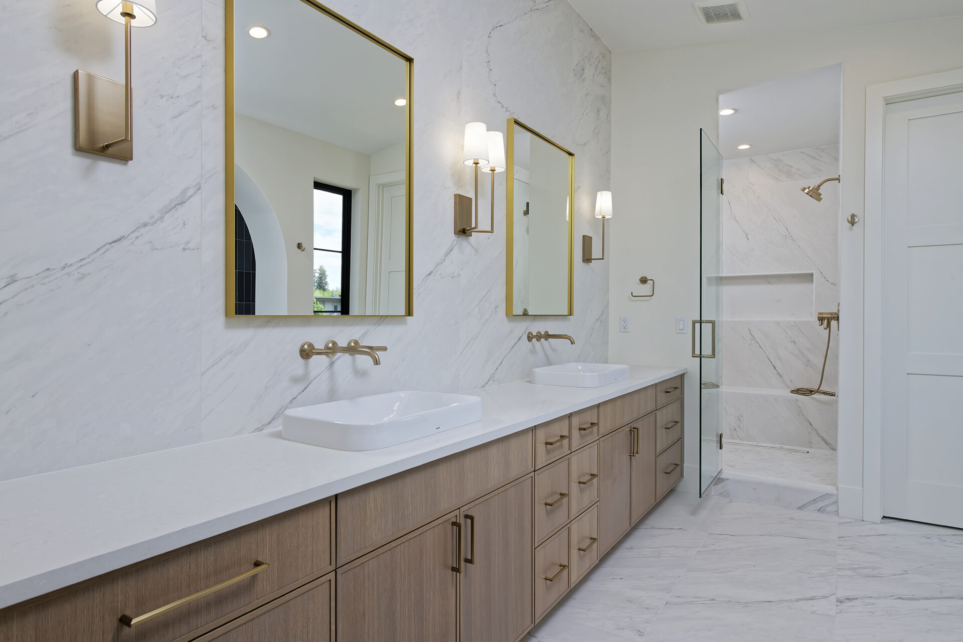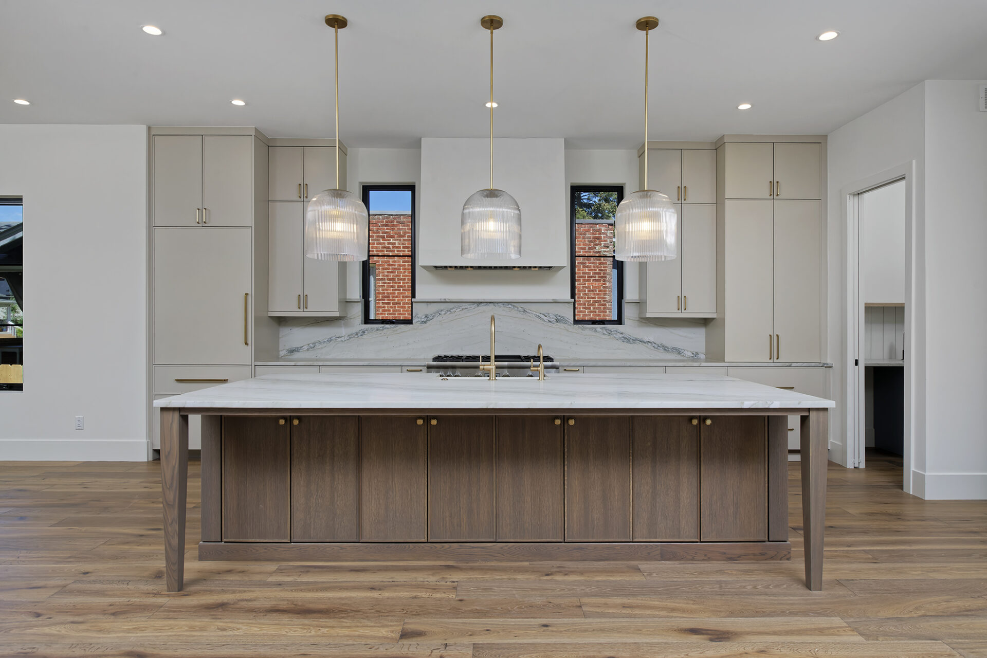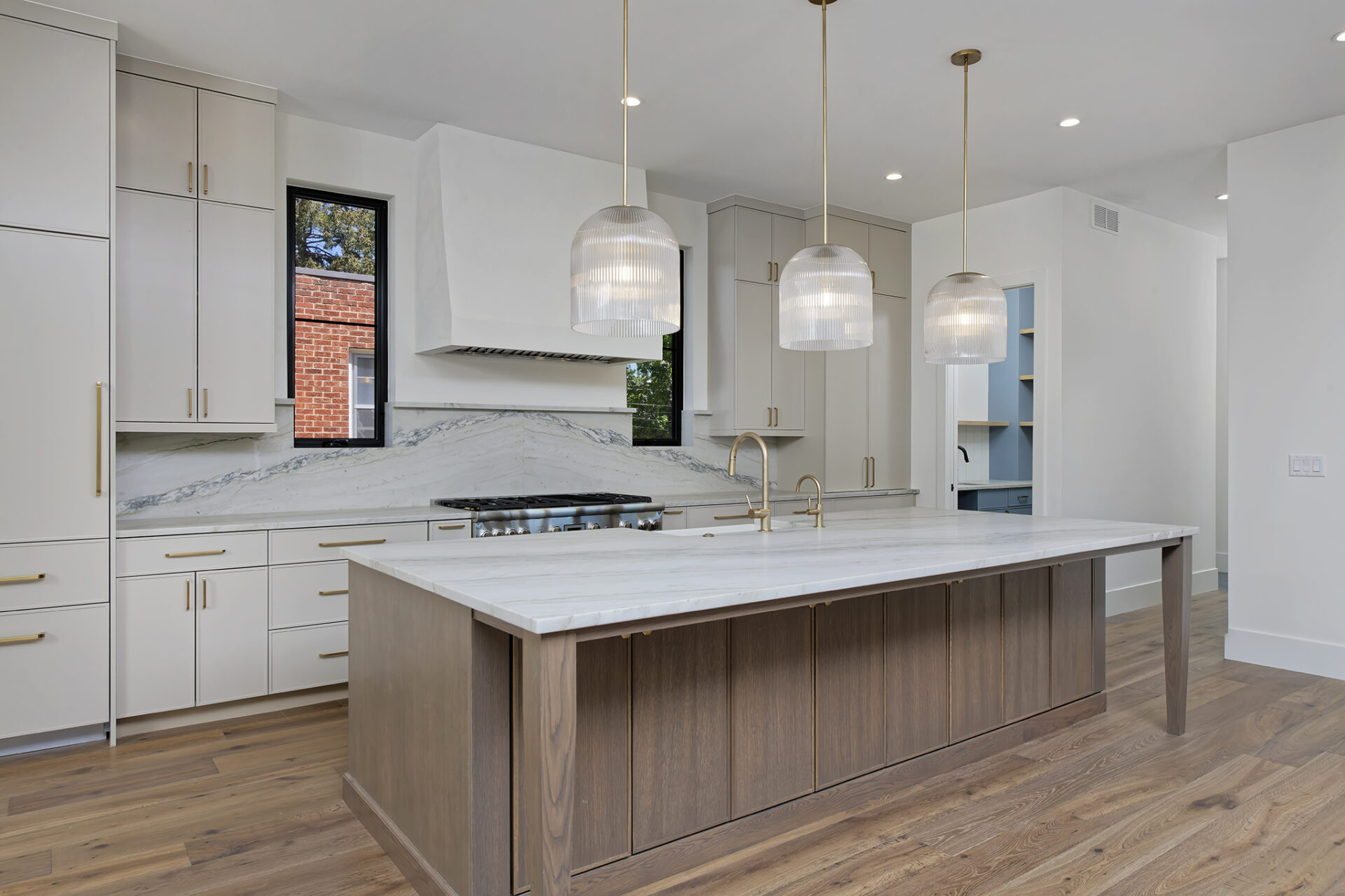 Step into a culinary enthusiast’s dream kitchen, complete with a full-height quartzite backsplash. State-of-the-art appliances and custom cabinetry provide both functionality and style.