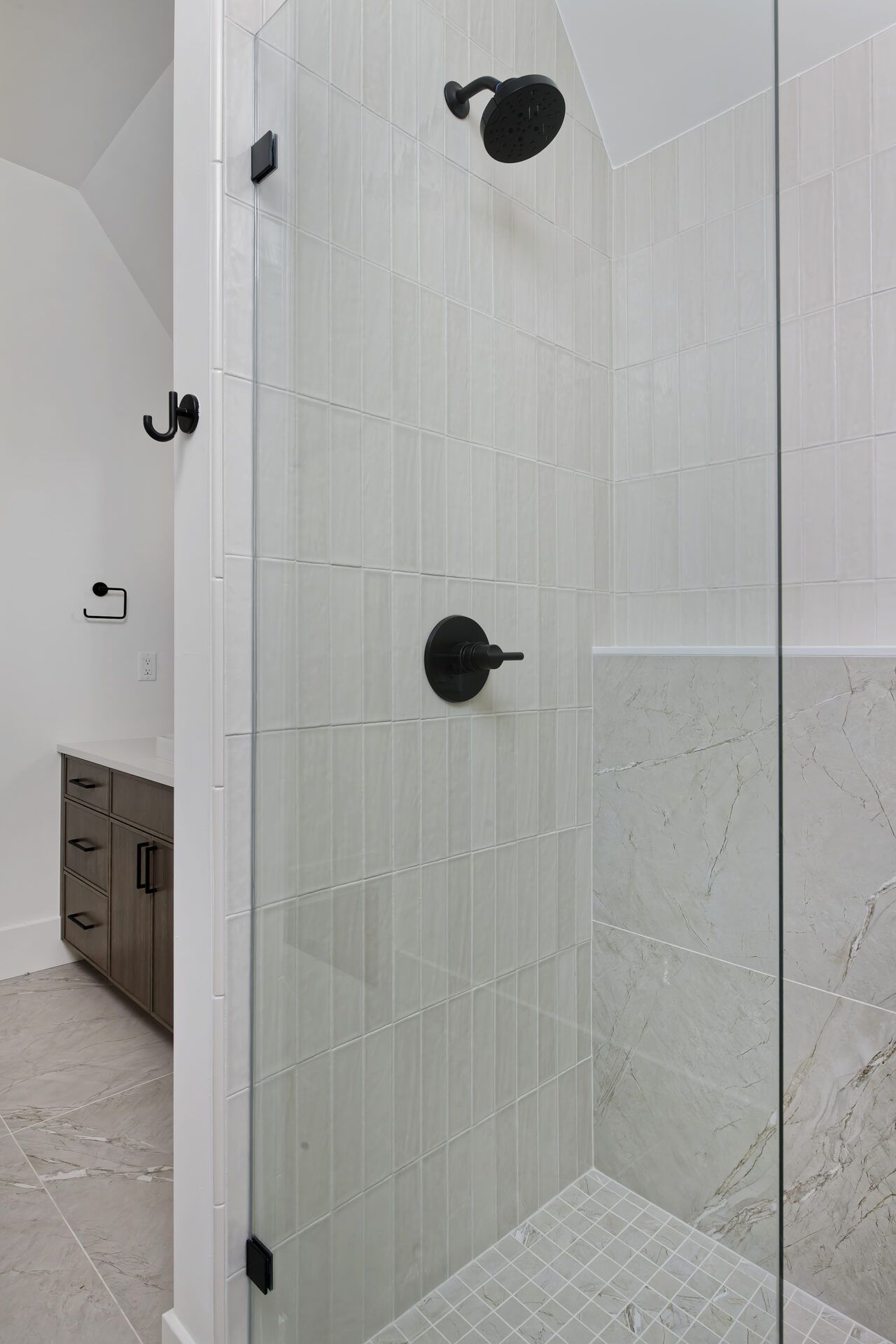 Retreat to the luxurious primary suite, showcasing a bathroom that rivals premier spas. Indulge in the serene atmosphere with high-end fixtures, a soaking tub, and elegant finishes, designed for ultimate relaxation.
